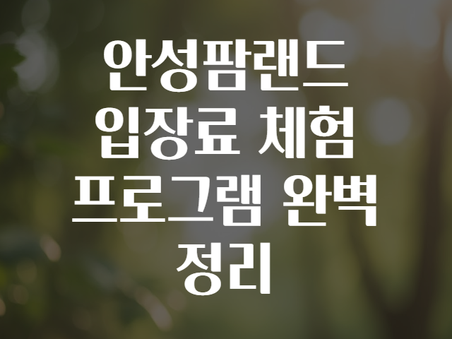 📌 주의! 공식 홈페이지 안성팜랜드 공식 사이트에서 방문 전 입장료 변동 및 예약 사항을 꼭 확인하세요.